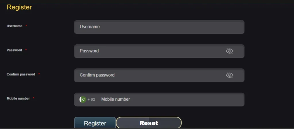 • Deposit Options: Mobile wallets i.e., Jazz Cash and Easy Paisa, or bank transfer.